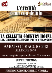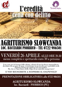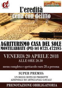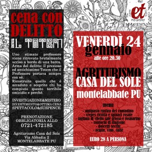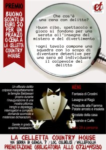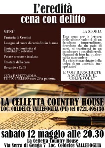 Ogni tavolo comporrà una squadra e tutti voi diventerete detective per una sera. L’agriturismo Ca’ Maddalena fa da meravigliosa cornice ad una inquietante scena del crimine, piena di mistero ed intrecci inaspettati…