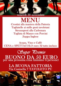 SPETTACOLO + menu bevande incluse costo a persona euro 39