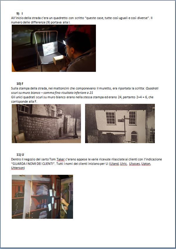 – addentratevi nel percorso assegnato alla scoperta di LUOGHI, PERSONAGGI, ATMOSFERE ed ENIGMI