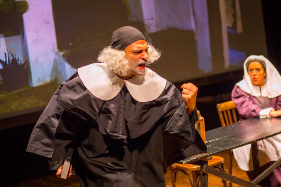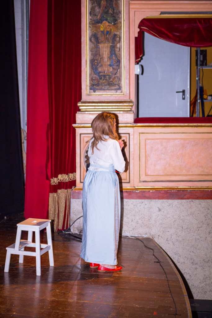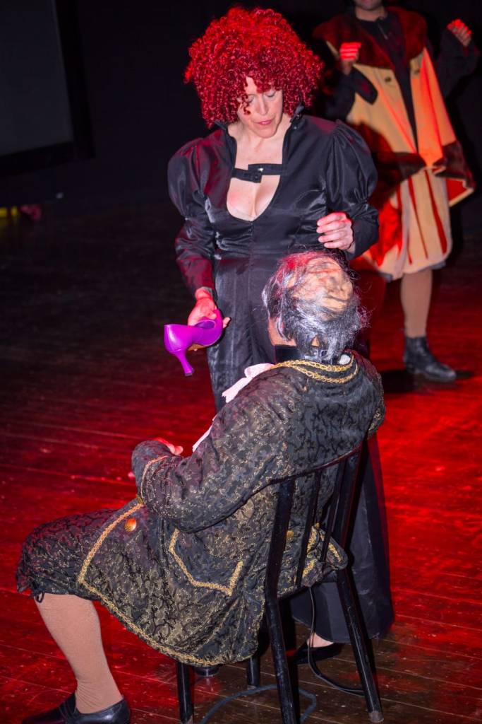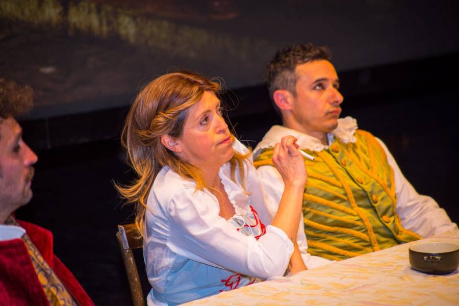 Abbiamo voluto una scenografia quasi surreale e stilizzata; costumi e colori emblematici ed irrealistici, perché volevamo che questo spettacolo fosse una sorta di specchio per lo spettatore, così da rendere possibile un’immedesimazione distaccata. Attraverso il paradosso, vogliamo dare a chi guarda, spunti di riflessione e di riconoscimento.